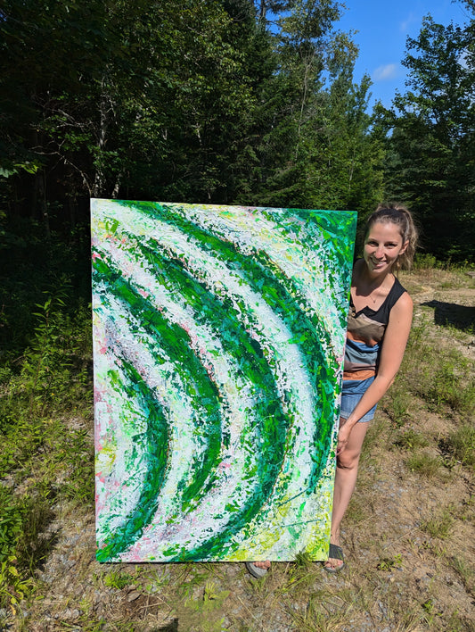 "J’ADORE ses toiles! Super gentille, amicale, la toile arrive rapidement et super bien emballée; bref WOW"